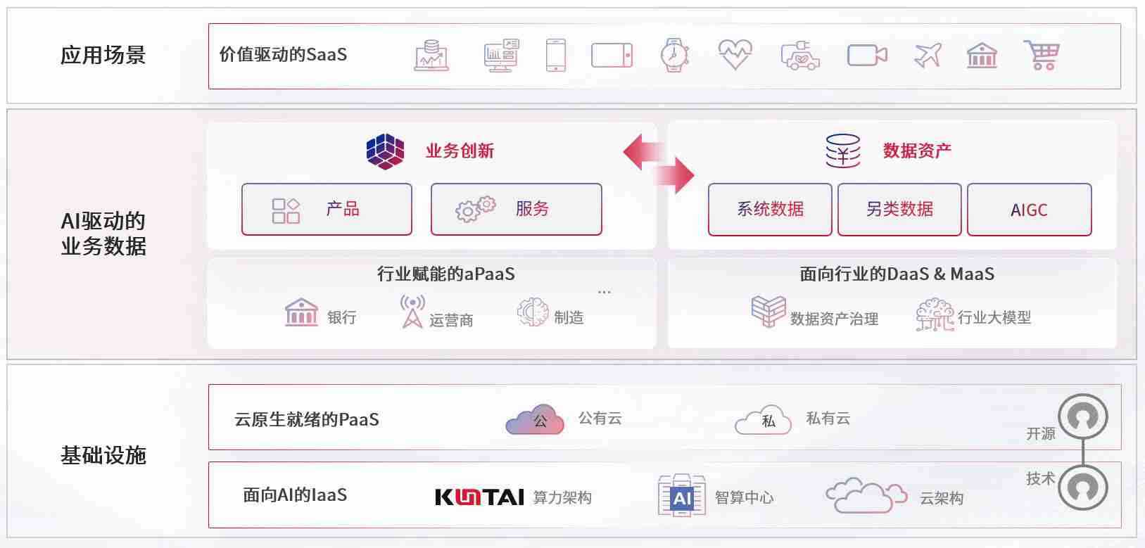 数字时代,,,围绕企业数字化转型的关键要素,,355娱乐数码开创性的提出数云融合战略和技术体系框架,,,着力在云原生、、数字原生、、、AI原生和信创产业上架构产品和服务能力,,,,为处在不同数字化转型阶段的快消零售、、、、汽车、、、、金融、、、医疗、、、政企、、教育、、、、运营商等行业客户提供泛在的敏捷IT能力和融合的数据驱动能力,,,构建跨界融合创新的数字业务场景和新业务模式,,助力企业级客户建立面向未来的核心能力和竞争优势,,,全面推动社会的数字化、、、、智能化转型升级。。。。